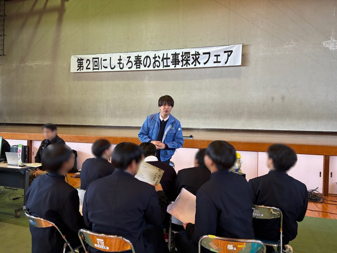 先日、「にしもろ春のお仕事探求フェア」に参加し、当社の仕事について楽しくお話してきました。